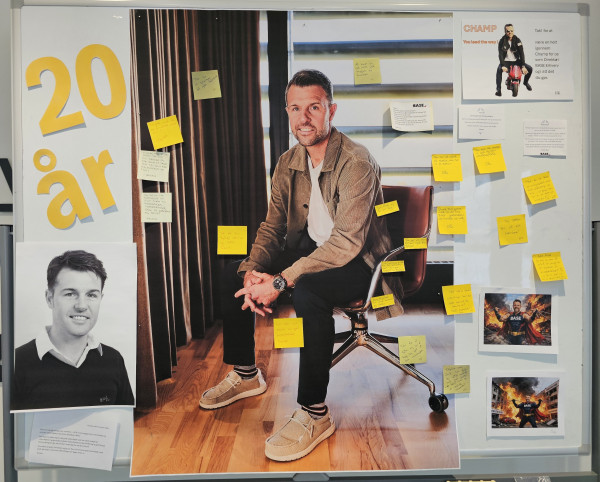 I 2023 kunne vi fejre 10 år med Klaus som direktør, og den 10. januar markerede vi endnu en milepæl, at han har været en del af BASE i hele 20 år. Det skulle selvfølgelig fejres!