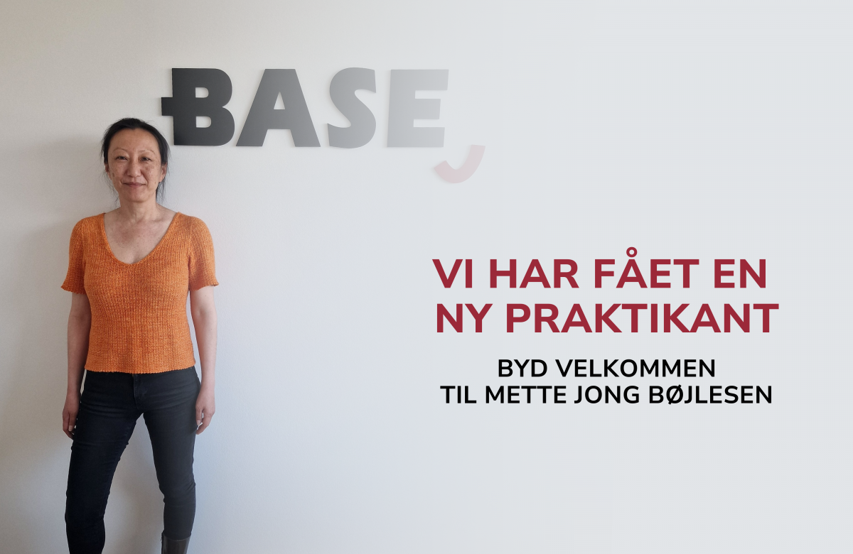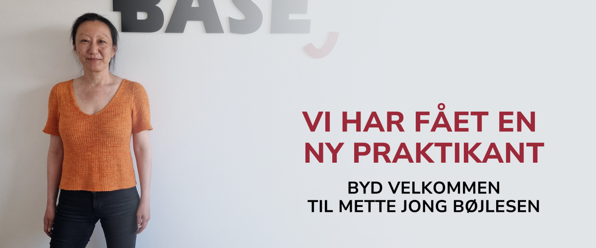 Hos BASE Erhverv prøver Mette kræfter med forskellige kontoropgaver og arbejder tæt sammen med Elise, Jeppe og Helena. Hun har allerede bidraget til opdateringen af vores referencer på hjemmesiden og er faldet rigtig godt til hos BASE.