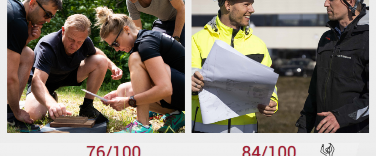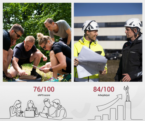 I BASE er vi klar over, at vores medarbejdere er vores største værdi! Det er vigtigt, at de trives, og at de er glade for at gå på arbejde. Derfor er vi også stolte af, at vi blev kåret til byggebranchens bedste mindre arbejdsplads i 2020/2021, og at vores arbejdslyst er målt til en score på 84/100.