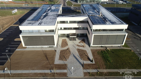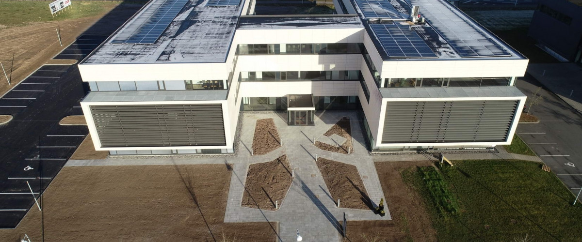 Domiciludvidelsen, på Erhvervsbyvej i Horsens, er nu færdig og kunne i denne uge afleveres til en meget tilfreds bygherre. Arkitema Architects K/S har tegnet stregerne til både den eksisterende og den nye udvidelse. Det er lykkedes Arkitema at give den stringente bygning et smukt og fuldendt udtryk ved udvidelsen. Rønslev Rådgivende ingeniører har været rådgivere på udvidelsen. Sammenbygning mellem eksisterende byggeri og en ny udvidelse er altid udfordrende, både fordi den eksisterende bygning fortsat skal være i drift og tilgodese de lejere der fortsat skal kunne drive virksomhed gnidningsløst i byggeperioden. Men også teknisk, da sammenbygninger stiller krav til perfektion.