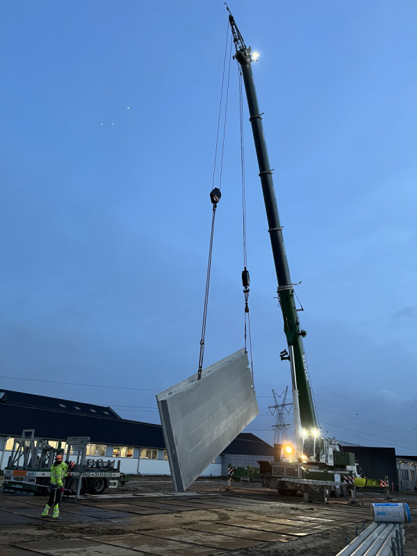 - 52 sandwichelementer med en samlet vægt på 940 ton – hver med en størrelse på 3,6 x 10,6 meter, og det tungeste element vejer 20,6 ton.