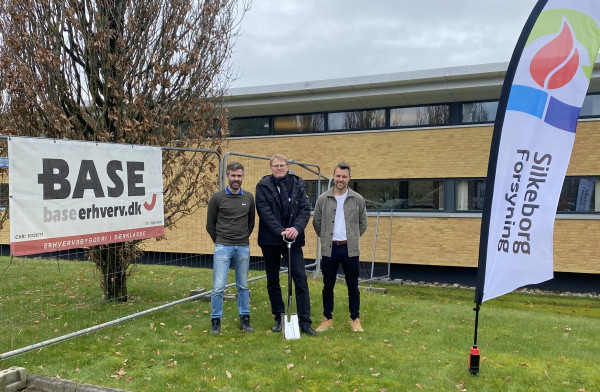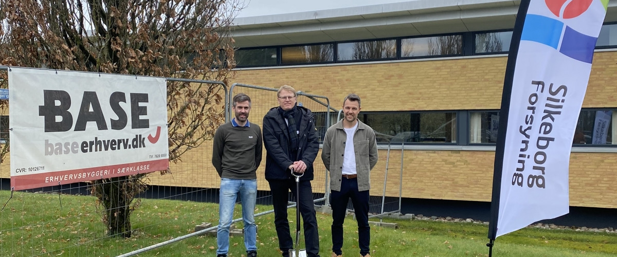 Vi er i gang! Med det første spadestik har vi nu officielt sat gang i opførelsen af det nye byggeri for Silkeborg Forsyning, et projekt, som vi glædeligt kunne annoncere for tre uger siden. Det første spadestik blev foretaget af Jens Frederik Bastrup, administrerende direktør for Silkeborg Forsyning.