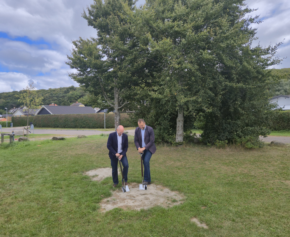 Det første spadestik blev taget af vores regionsdirektør Rasmus Mørk og Halsnæs Kommunes borgmester Steffen Jensen, på en solrig dag med masser af god stemning