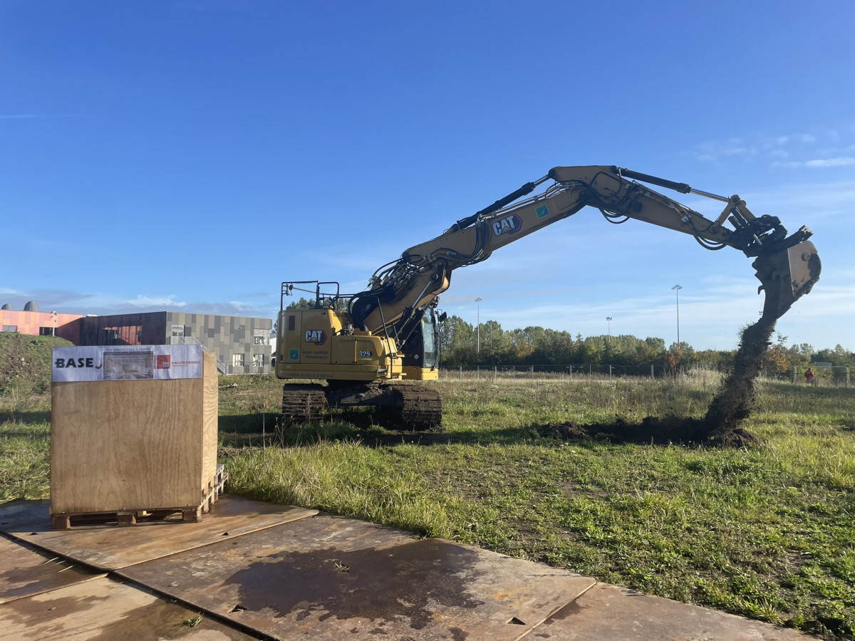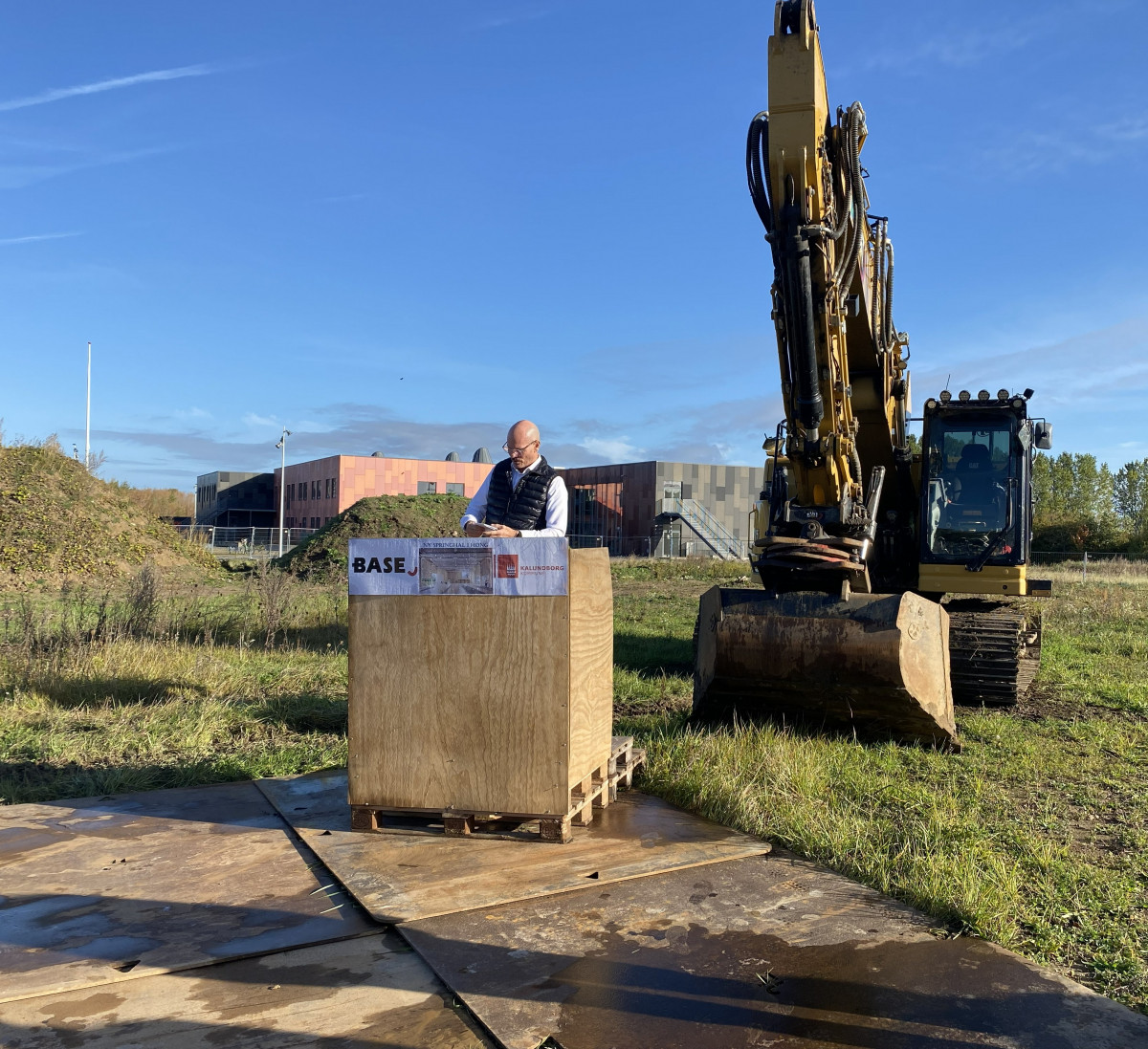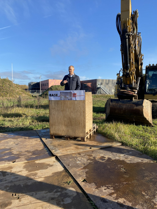 Ved første spadestik holdt borgmester Martin Damm og vores regionsdirektør Rasmus Mørk taler, inden Martin tog det første officielle spadestik i gravemaskinen.