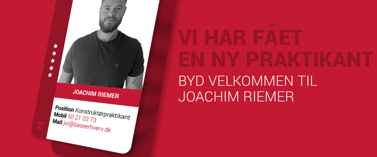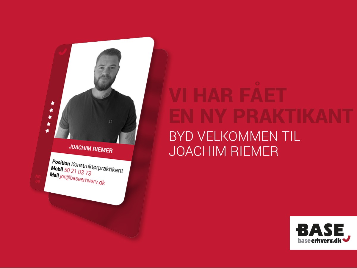I dag byder vi velkommen til Joachim der er startet som praktikant hos BASE Erhverv. Joachim er tidligere uddannet maler og er på nuværende tidspunkt i gang med bygningskonstruktøruddannelsen på Zealand i Næstved.