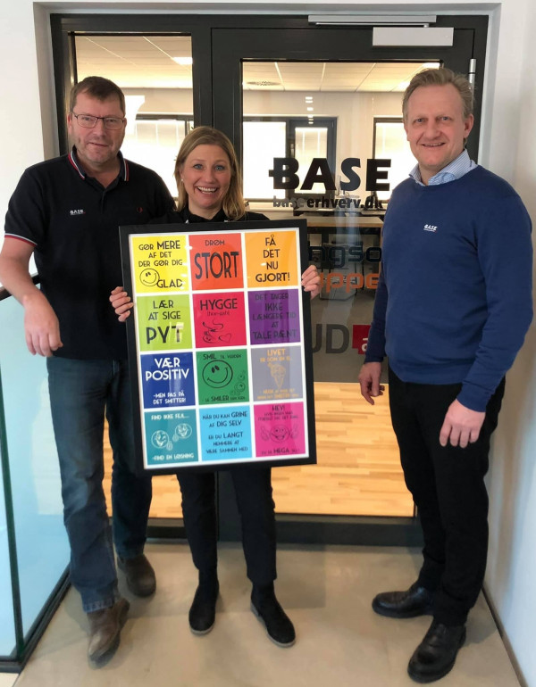 BASE Erhverv har sponsoret en indrammet plakat til Hedensted by's børnehaver og skoler. Salg af plakater, som blev lavet til projektet, skaffer i dette tilfælde penge til nye projekter.