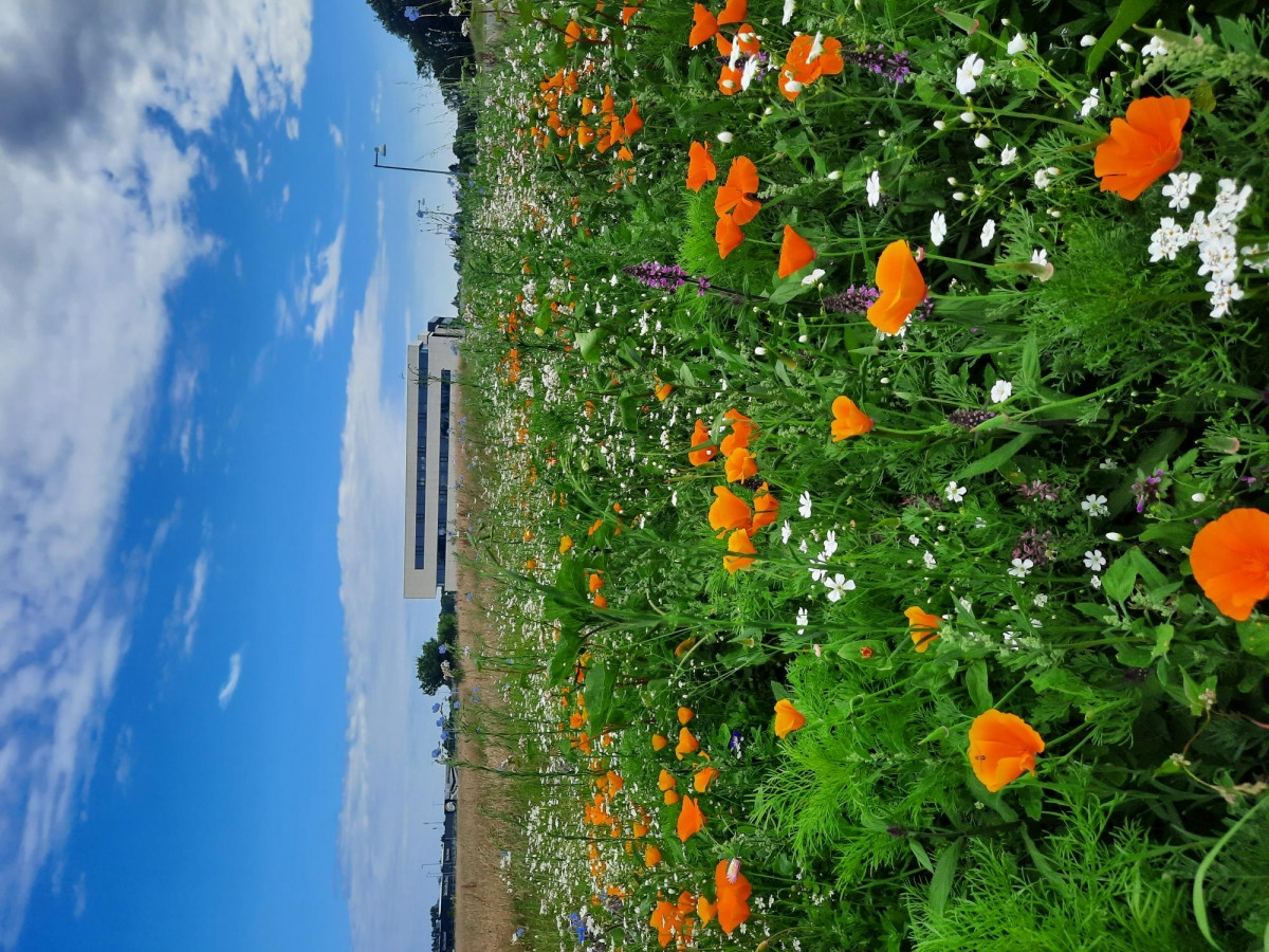 Projektet handler om at fremme biodiversiteten ved at omdanne et græsareal til en smuk blomstereng.