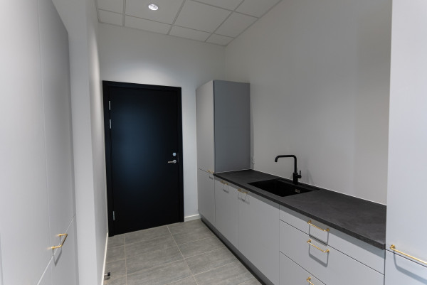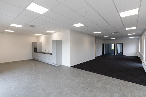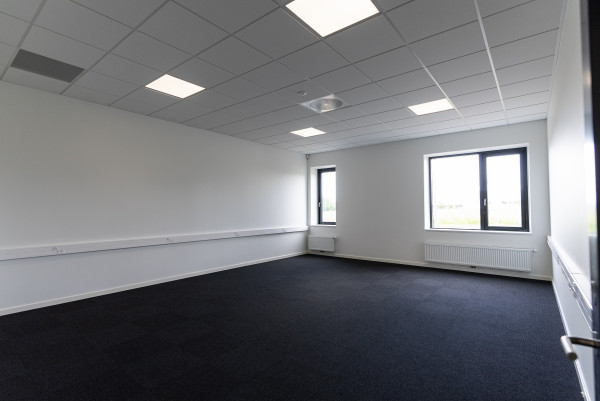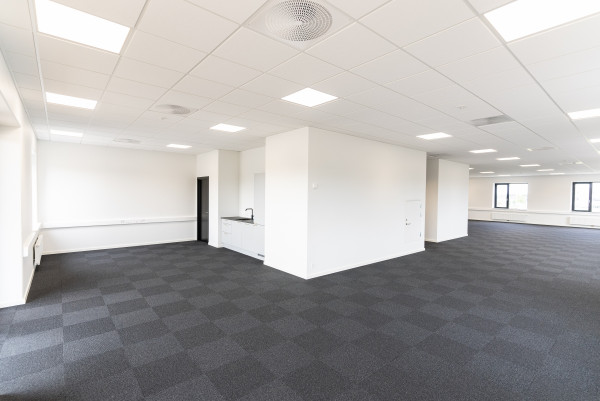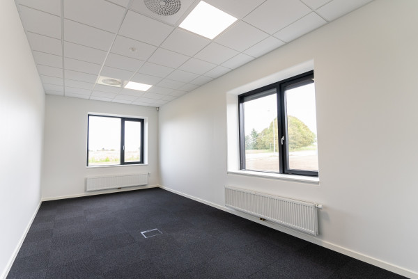Derefter kan man bevæge sig ind i kontordelen, der er opført i 2 etager, indeholdende åbne kontorlandskaber, køkkener, toiletter, rengøringsrum, arkiver og mødelokaler.