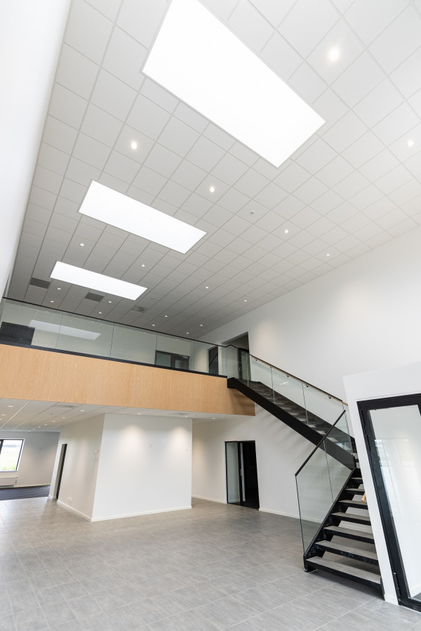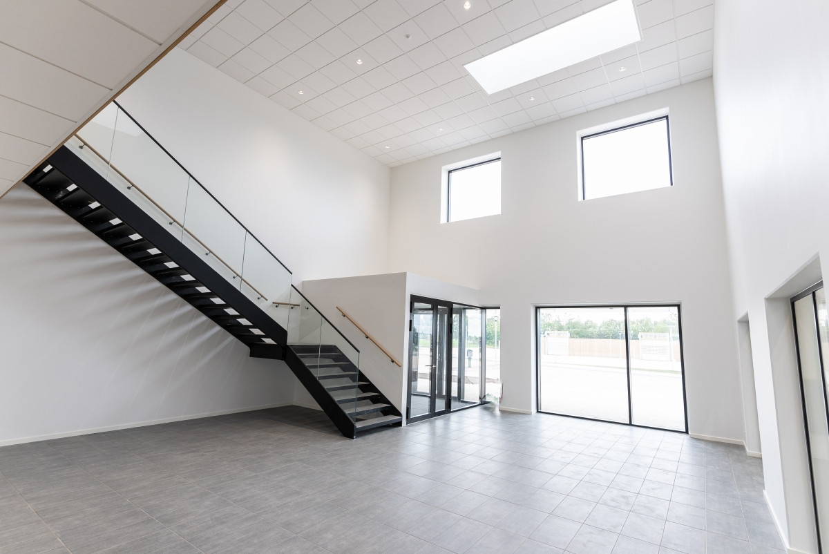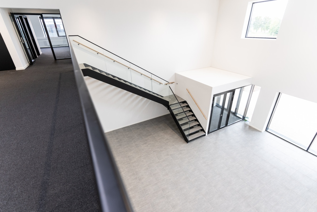 "Vi skulle ikke bare have en industribygning, og derfor ville vi gerne have, at det ser flot og præsentabelt ud både udefra og inde. Det er blevet løst rigtigt fint, hvor der er en naturlig adskillelse mellem de forskellige funktioner i bygningen," forklarer Michael Laursen.