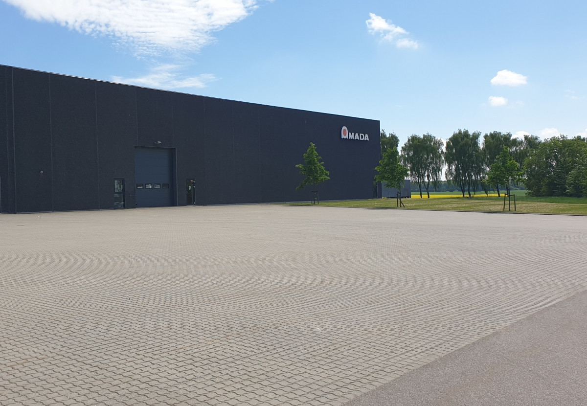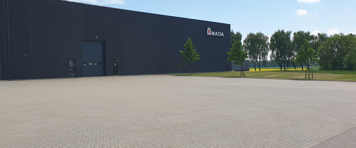 I Erhvervsbyen Horsens Syd har vi udvidet lagerhal og udstillingshal til den japanske virksomhed Amada (tidligere Dansk Plade Team). Udvidelsen omfatter produktionshal og showroom med toilet og kontor. Erhvervsbyggeriet fremstår indvendigt med et lyst og venligt udtryk med malede vægge og epoxy-belægning på gulvet.
