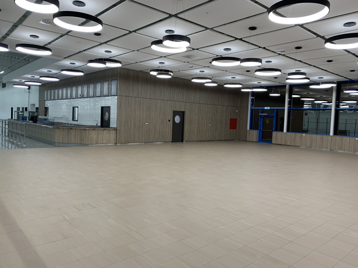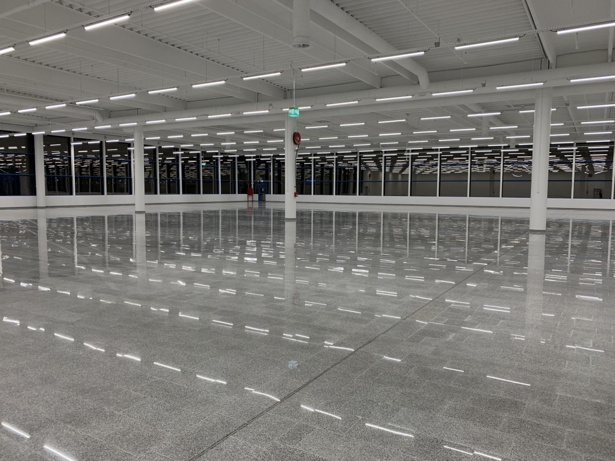 Salgsarealet er udført med svenske granitfliser.