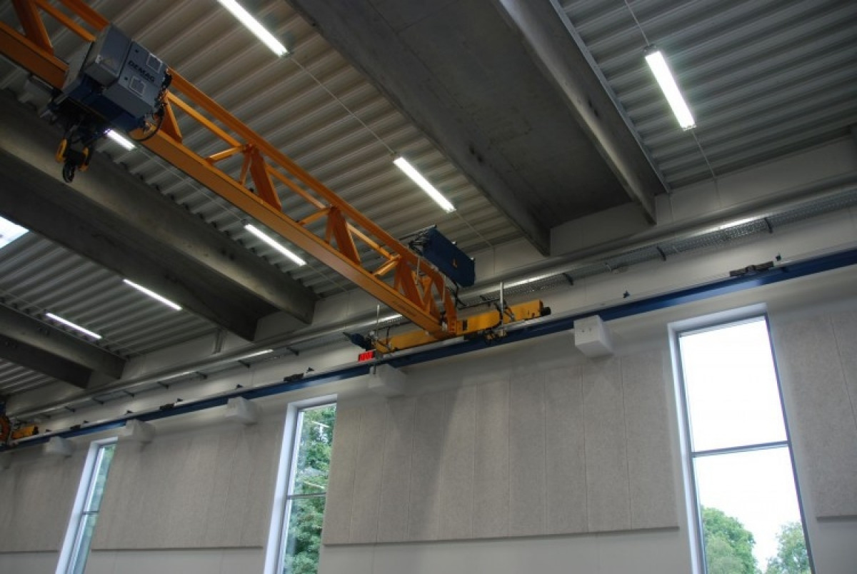 Den ene hal er bestykket med to portalkraner. Dvs. at der fuld krandækning, så hallen kan anvendes til produktion, lager mv.