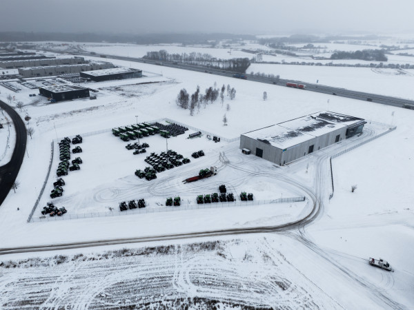 Udenfor etableres oplagsarealer, både belagte og grusarealer, til oplag af landbrugsmaskiner. Der etableres personale- og gæsteparkering mod motorvejen, hvor der også opstilles to dobbeltstandere til opladning af elbiler.