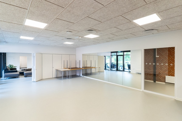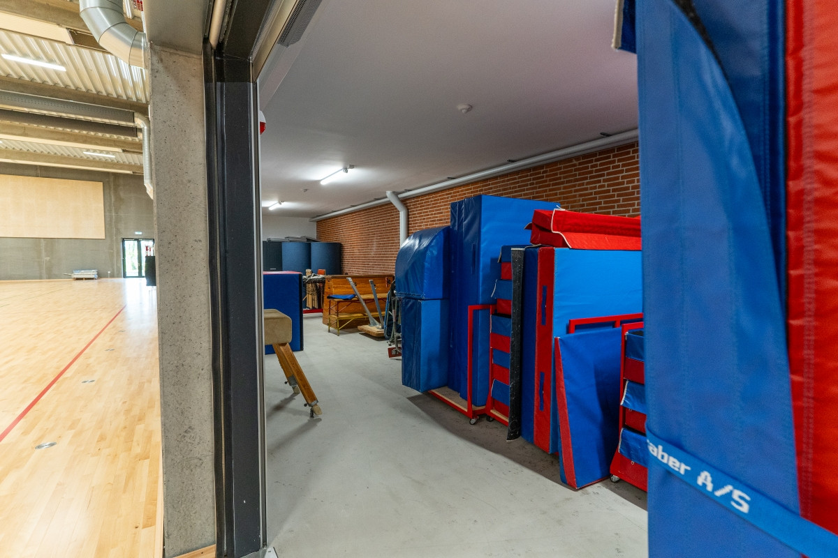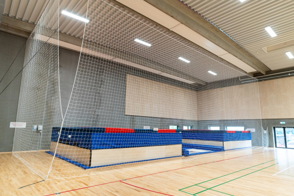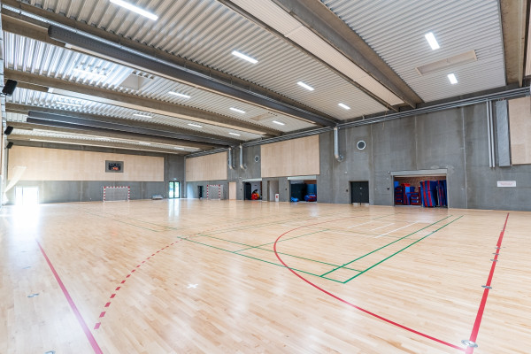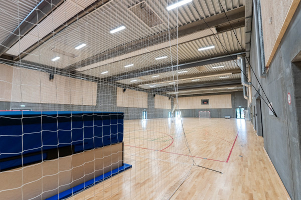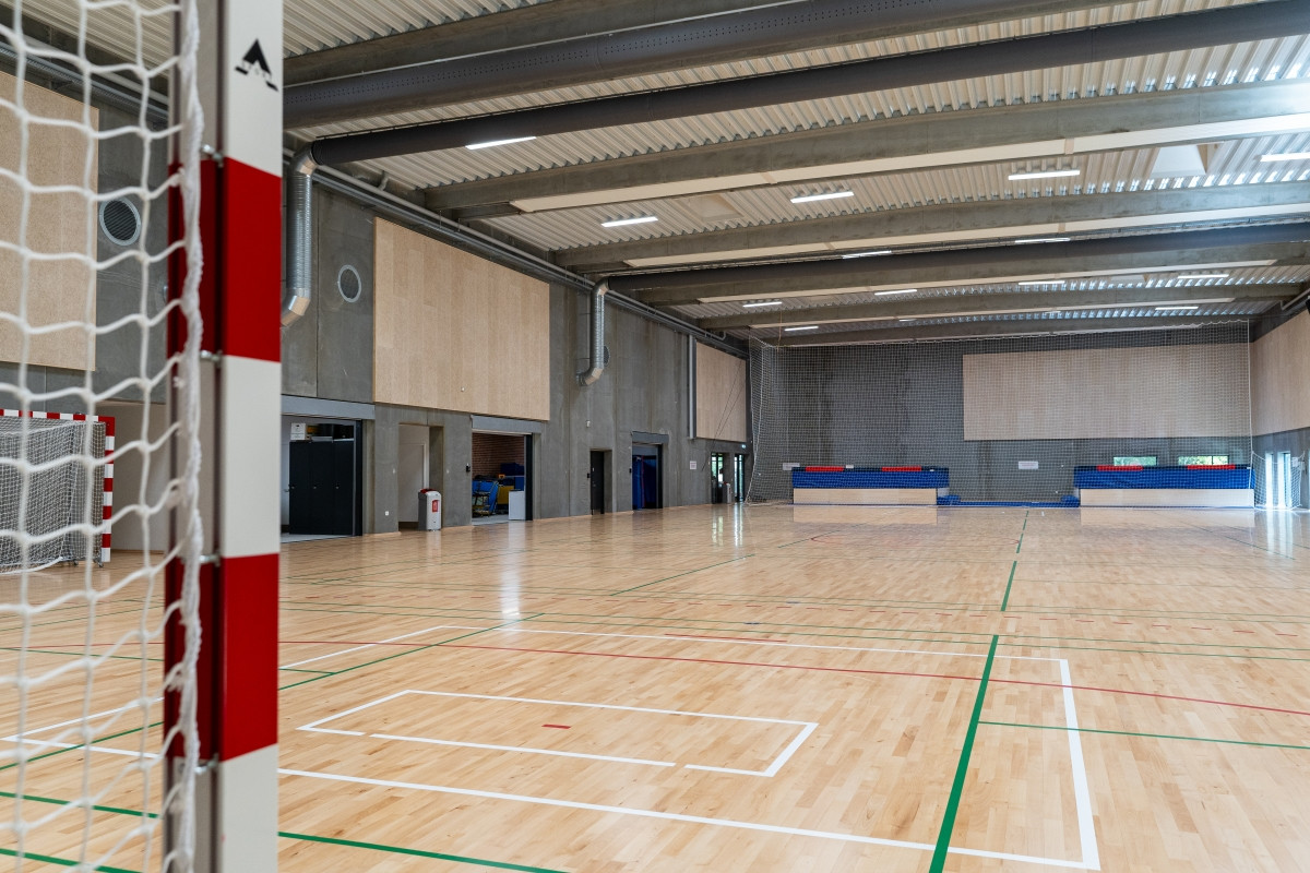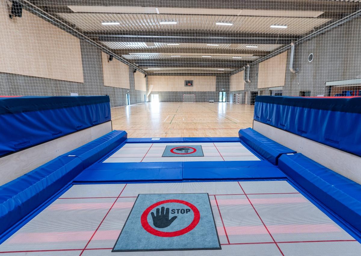 Byggeriet omfatter opførelse af ny sportshal, med tilhørende springgrav og trampolin, samt ombygninger og sammenbygninger med eksisterende hal og skole. BASE har på samme tid stået for projektering og realisering af parkeringsplads, adgangsveje, legepladser og andre uderum.