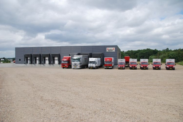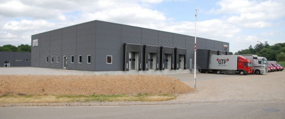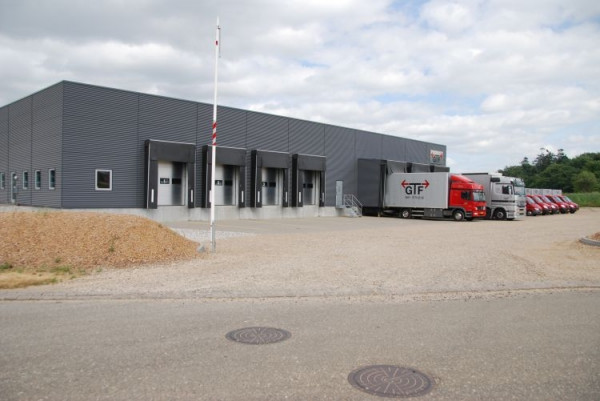 BASE har som totalentreprenør opført lager for transportfirmaet GTF i Give. I sammenhæng med lageret er udført kontorbyggeri og velfærdsrum. Ydervægge er udført med isolerede stålkassetter og stålbeklædt udvendigt med vandretliggende sinusplader. For af- og pålæsning er etableret ledhejseporte med tilhørende porttætninger. Etageareal i alt ca. 1.200 m2. Tilhørende belægningsarealer fortrinsvist udført som grusareal er på ca. 8.000 m2.