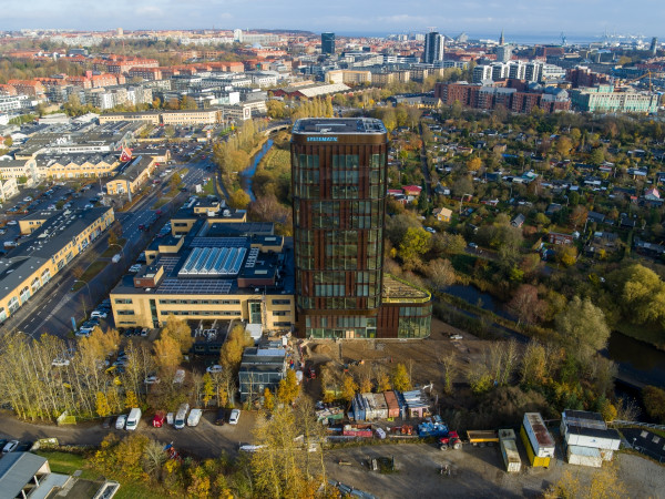 For Ejendomsselskabet Olav de Linde og medinvestor Systematic i Aarhus har BASE opført et arkitektonisk markant 14 etagers kontorhus på 7.350 m2, som om- og tilbygning til eksisterende byggeri.