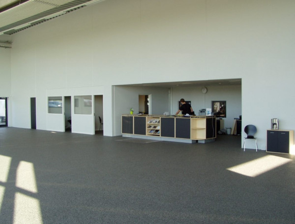 I alt er der et etageareal på ca. 1.440 m2. Indretning af bygningen er sket i tæt samarbejde med Mercari Biler og mht. installationer er der i værkstedsdelen udført trykluftsinstallationer, autogas- og svejseudsugning samt ventilationsanlæg. Udvendigt er der etableret bremsestand.