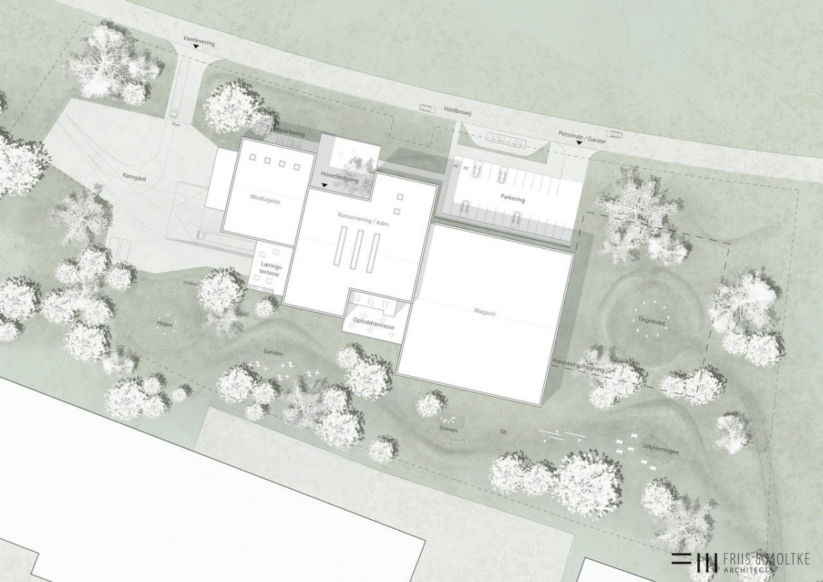 Projektet består af en magasinbygning, en bygning til modtagelse og konservering, samt kontor og læringsfacilitet på i alt ca. 6.145 m² brutto med tilhørende udearealer, i form af læringsarealer til læringsfacilitet og parkerings- og kørearealer til biler og lastbiler.