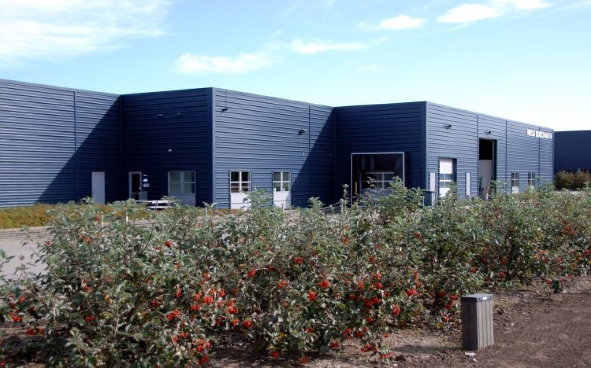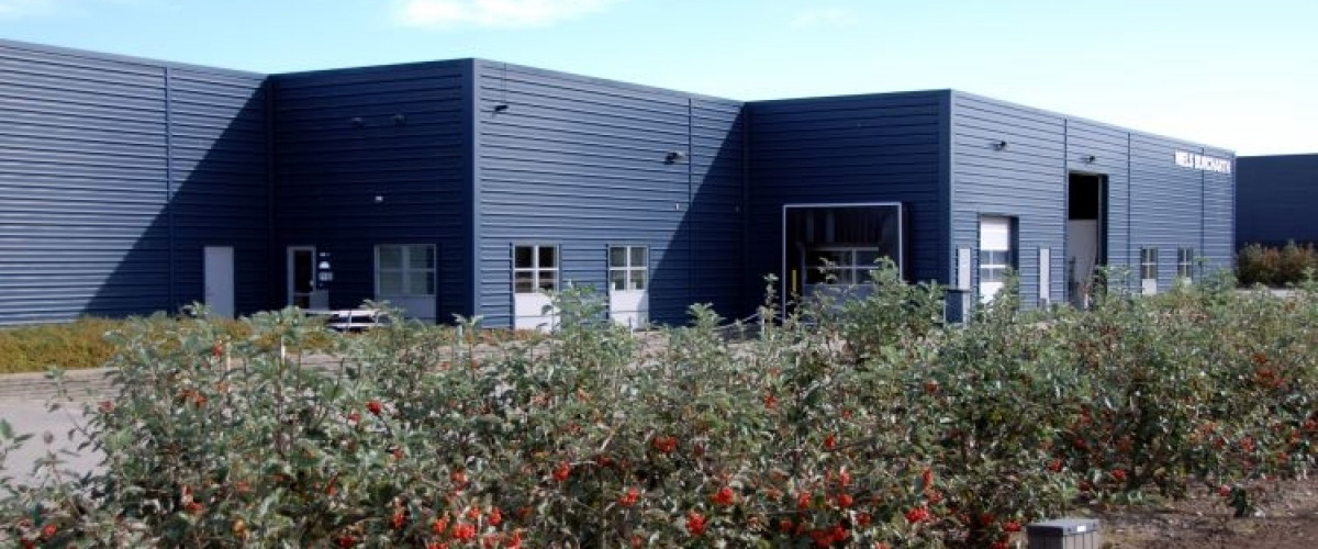 For Niels Burcharth har BASE som totalentreprenør udvidet lageret til eksisterende erhvervsbygninger. I en mindre del af lageret er der indrettet værksted. Erhvervsbyggeriet er opført som stålrammehal, med isolerede stålkassetter i facader, afsluttet med stålbeklædning. Etageareal i alt ca. 900 m2. Der er udført ca. 1.000 m2 betonstensbelægning herunder tilkørselsrampe til portsluse.