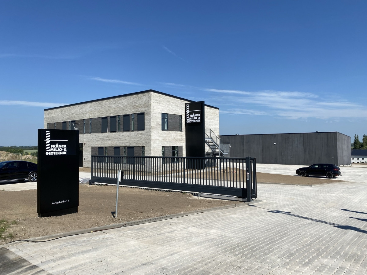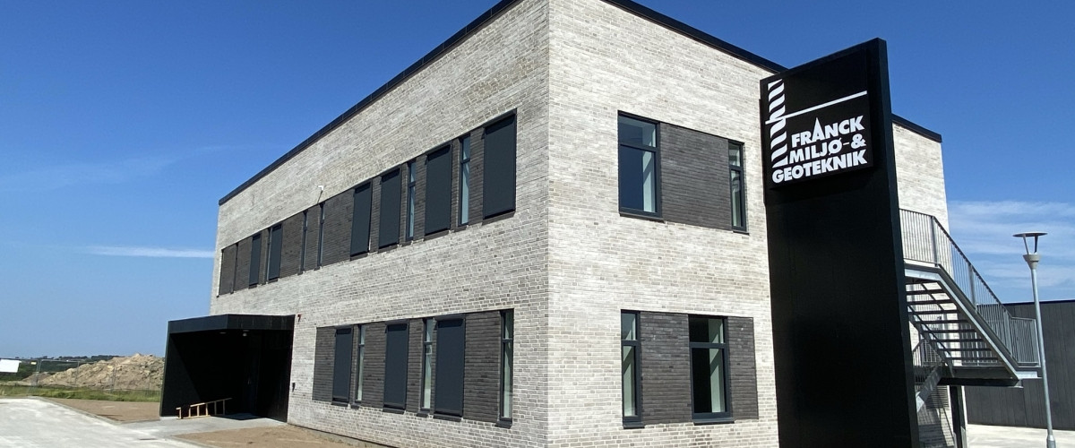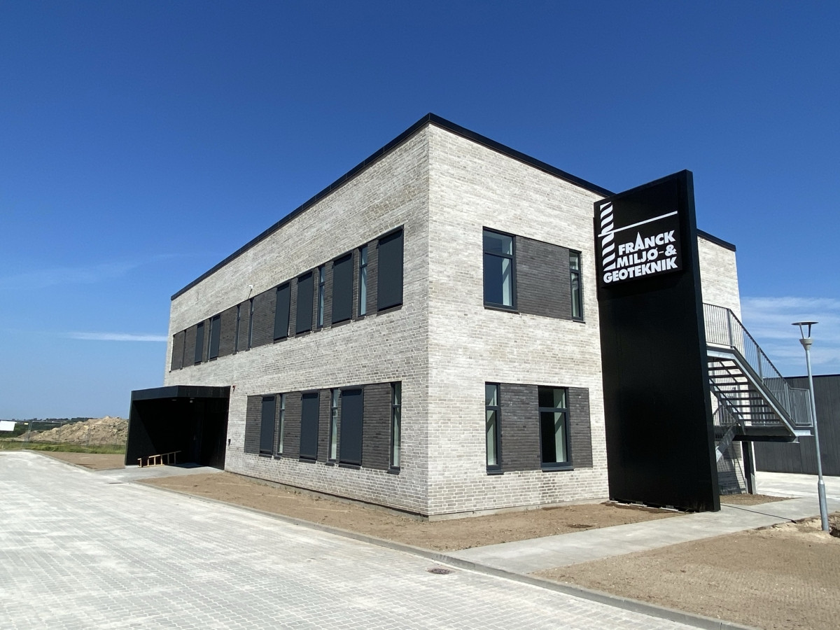 Franck Miljø- & Geoteknik er et rådgivende ingeniørfirma med stærk ekspertise indenfor jordbunds- og miljøundersøgelser. Det nye domicil er bygget fra grunden. Dette gav Francks Miljø- & Geoteknik mulighed for at få et funktionelt byggeri, hvor virksomhedens arbejdsprocesser er tænkt ind i designet og udførelsen.