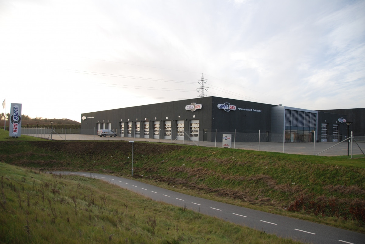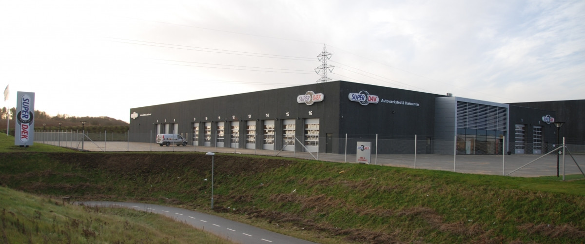 BASE har for NDI Ejendomme A/S opført nyt Super Dæk Service center i Brabrand ved Aarhus.