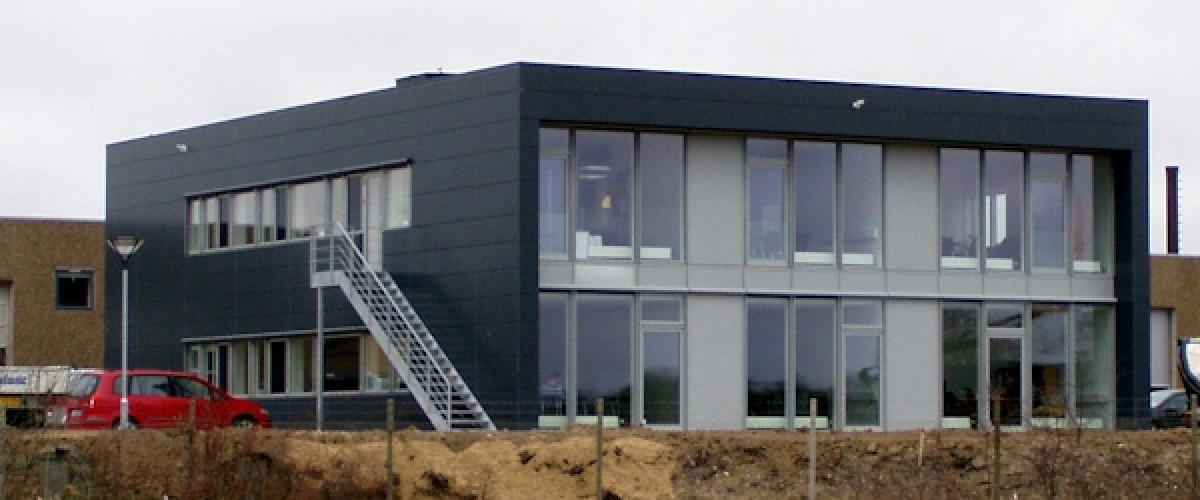Byggeriet er udført i betonelementer, og facaden er beklædt i alucobond. Administrationen er opført i to etager, som indeholder åben reception og hal, kontorer, prøveværksted, køkken/kantine, mødelokaler og toiletfaciliteter. Kontorerne fremstår meget lyse grundet glasvægge, store vinduesbånd og partier suppleret med ovenlys over den åbne indvendige trappe.
